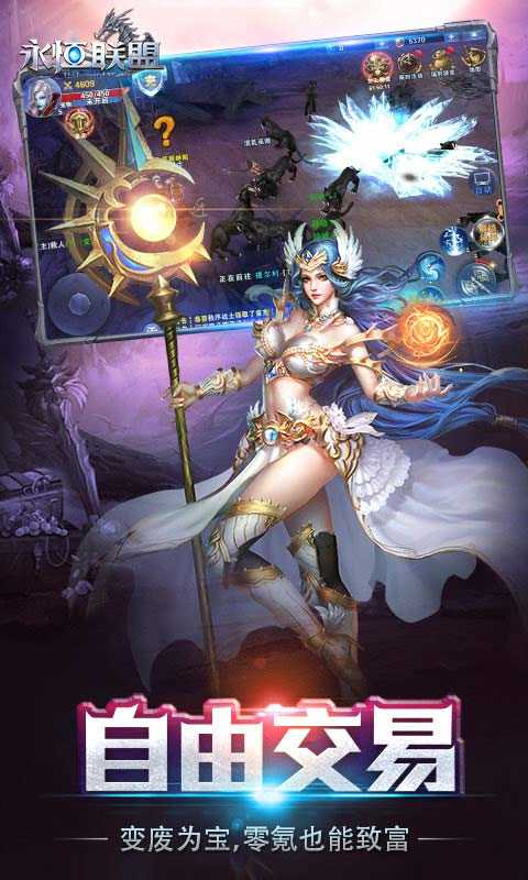 永恒联盟最新版手游,这是一款充满奇幻色彩的魔幻冒险佳作。在这里,万人能够同处一个屏幕,大家携手勇斗魔神,尽情畅享热血沸腾的激战快感。而且,跨服 PK 活动马上就要开启啦,各种稀有外形正等待着你来领取!游戏内支持自由交易,让你在玩游戏的同时还能赚取收益;一键挂机功能更是贴心,让你省心又省力。三大职业以绝美的姿态降临,赋予勇士们爆表的战力,屠神杀魔只需一击!