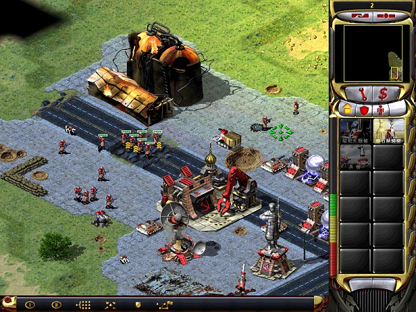 提供了丰富的战略选择。玩家可以通过建造不同的建筑来扩展基地功能,例如发电厂提供电力,兵营训练步兵,战车工厂生产装甲单位等。