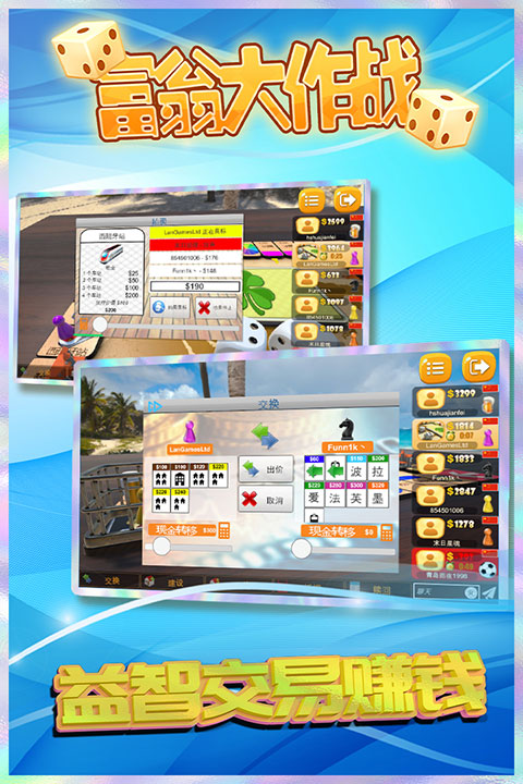 2、丰富多样的游戏内容,巧妙运用规则,成就真正的大富翁。