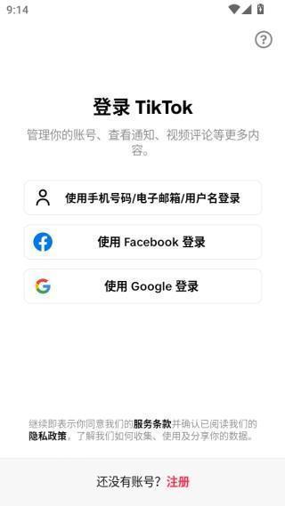 3、在此处能够登录TikTok,登录方式可选择手机号、电子邮箱或者用户名。