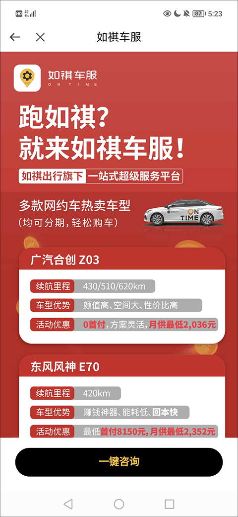 4、于如祺客服界面寻得并点击“一键咨询”选项。