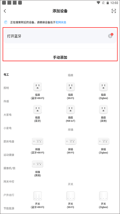3、开启蓝牙,使蓝牙与附近的智能设备进行匹配。当搜索到相关设备并点击连接后,即可添加智能设备。