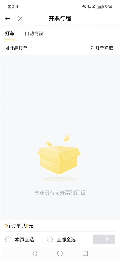 4、于开票行程界面寻觅并点击“订单”选项,随后点击下一步。
