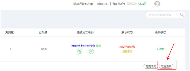 2. 只需点击活动右下方的“取消活动”选项,就能完成活动取消操作。