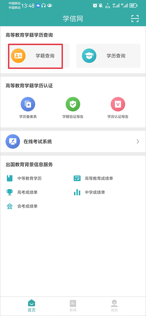 1. 进入学信网,在其首页位置点击学籍查询。