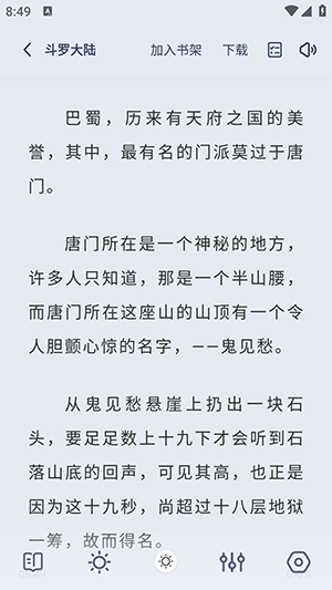 4、在阅读界面中,轻点一下屏幕,即可显示全部功能。