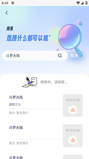 1. 开启软件,轻点搜索框,输入你想看的小说。
