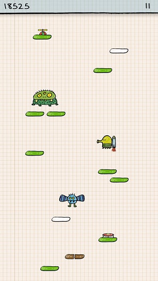 《涂鸦跳跃》这款游戏再次证明,玩法越是简单,游戏的粘性往往越高。在该游戏里,玩家无需琢磨过多策略与技巧,仅靠长期养成的本能,在一个又一个平台上跳跃即可。游戏画风卡通且舒适,这种圆润无棱角的画风深受玩家喜爱。